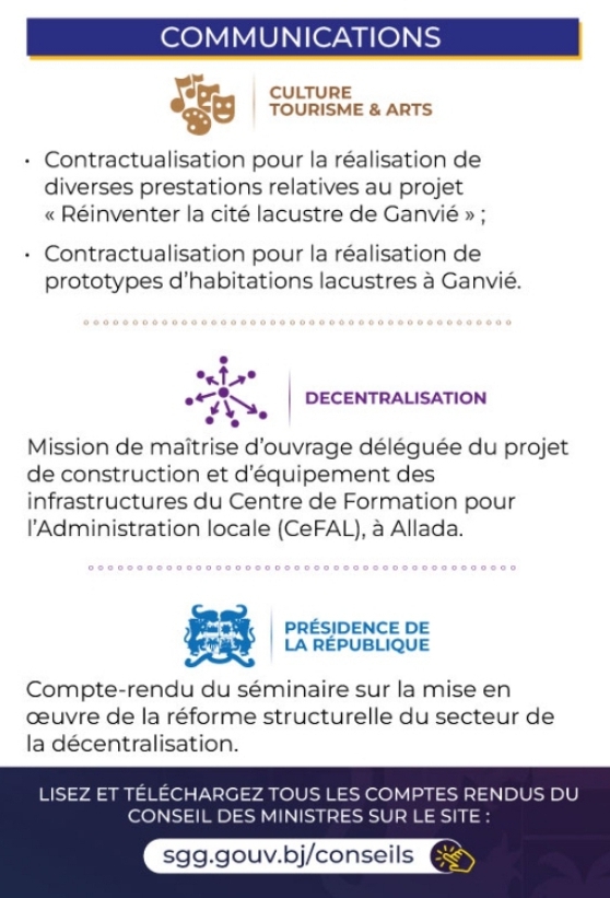 Le Conseil des ministres s’est tenu ce mercredi 18 juin 2025 au Palais de la Marina sous la présidence du Chef de l’État, Patrice Talon. Cette réunion hebdomadaire a permis au gouvernement de prendre plusieurs décisions dans divers secteurs de la vie nationale. Voici les grandes décisions.