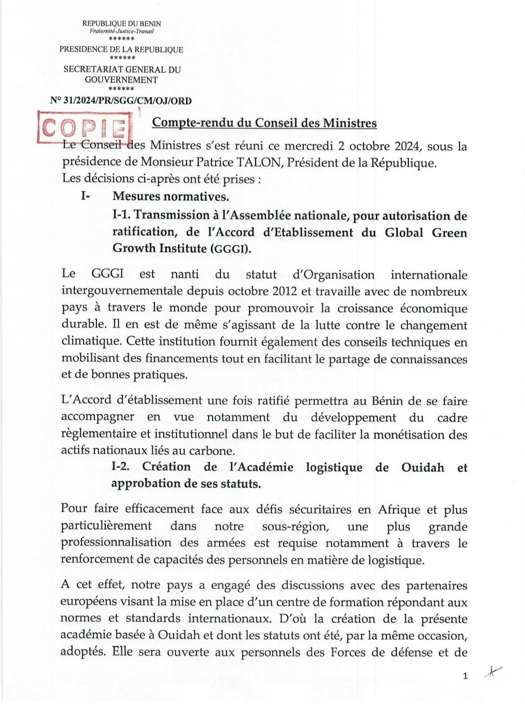 Lire tout le compte rendu du Conseil des Ministres ci-dessous 👇