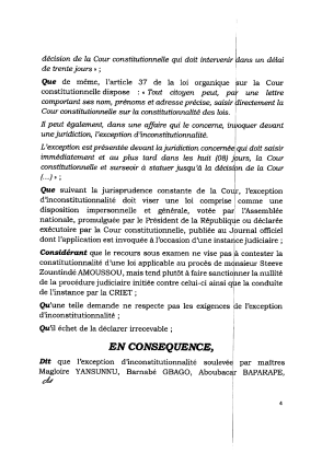 Cependant, dans une décision du 19 décembre, les Sages de la Cour Constitutionnelle ont jugé la requête irrecevable. Pour cause, l’exception d’inconstitutionnalité ne vise pas les procédures, mais les lois.
