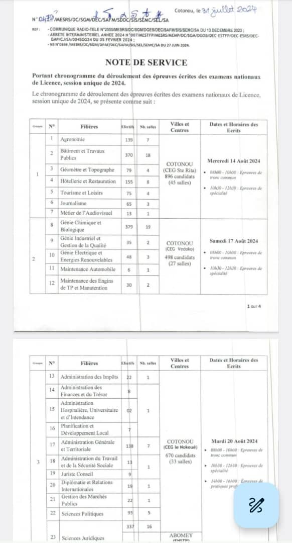 Les candidats aux examens nationaux de licence session unique 2024 composent les différentes épreuves à partir du mercredi 14 Août.