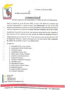 Le parti d’opposition Les Démocrates est à nouveau secoué par une crise interne. Dans une note rendue publique le jeudi 26 mars 2026, la direction a décidé de suspendre plusieurs de ses cadres pour des prises de position jugées contraires aux orientations officielles.