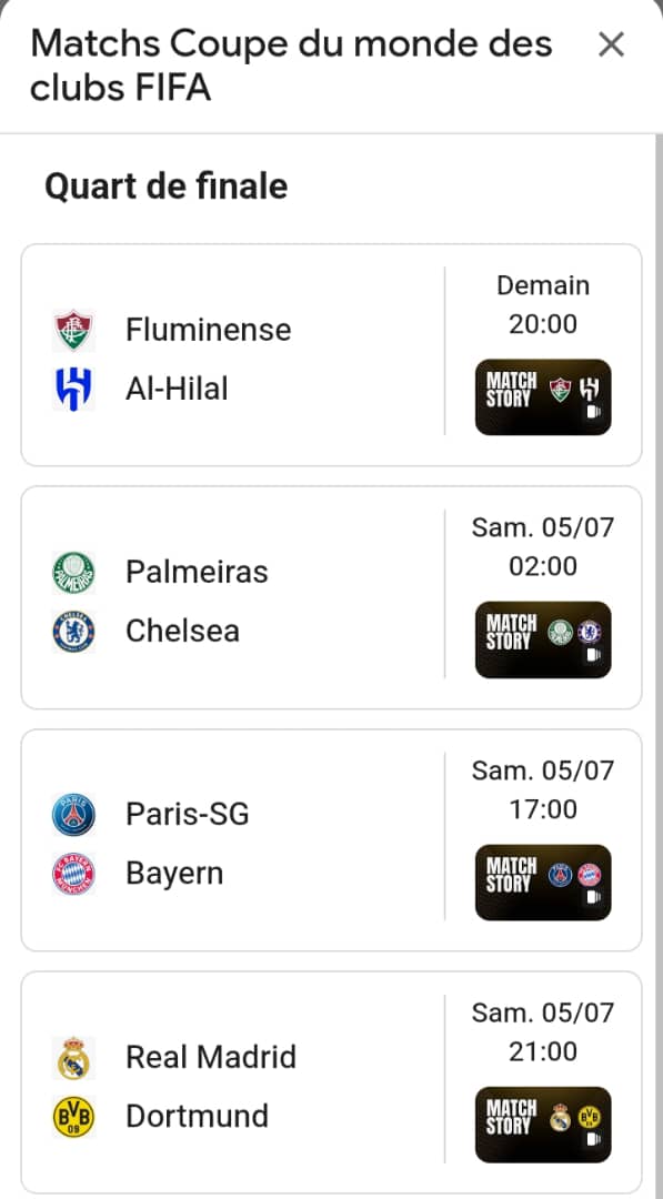 Ce vendredi 4 juillet 2025, Fluminense et Al Hilal ouvriront le bal à 20h. Dans la foulée tôt le samedi à 2h, le second club brésilien défiera les Blues de Chelsea dans une rencontre ou le spectacle sera au rendez-vous sans nul doute.
