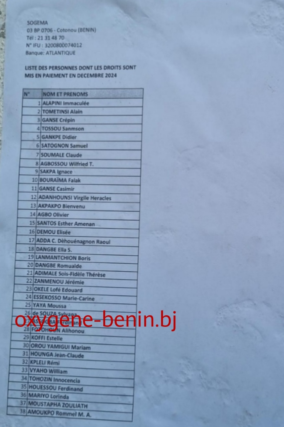 Il urge de préciser par ailleurs que, malgré cette nouvelle liste rendue publique le vendredi dernier, il y a continuité du service public au niveau de la Radio SOGEMA, du Bâtiment central et de la Direction de la société. Les agents toujours en service rendront complètement le tablier le 31 décembre 2024.